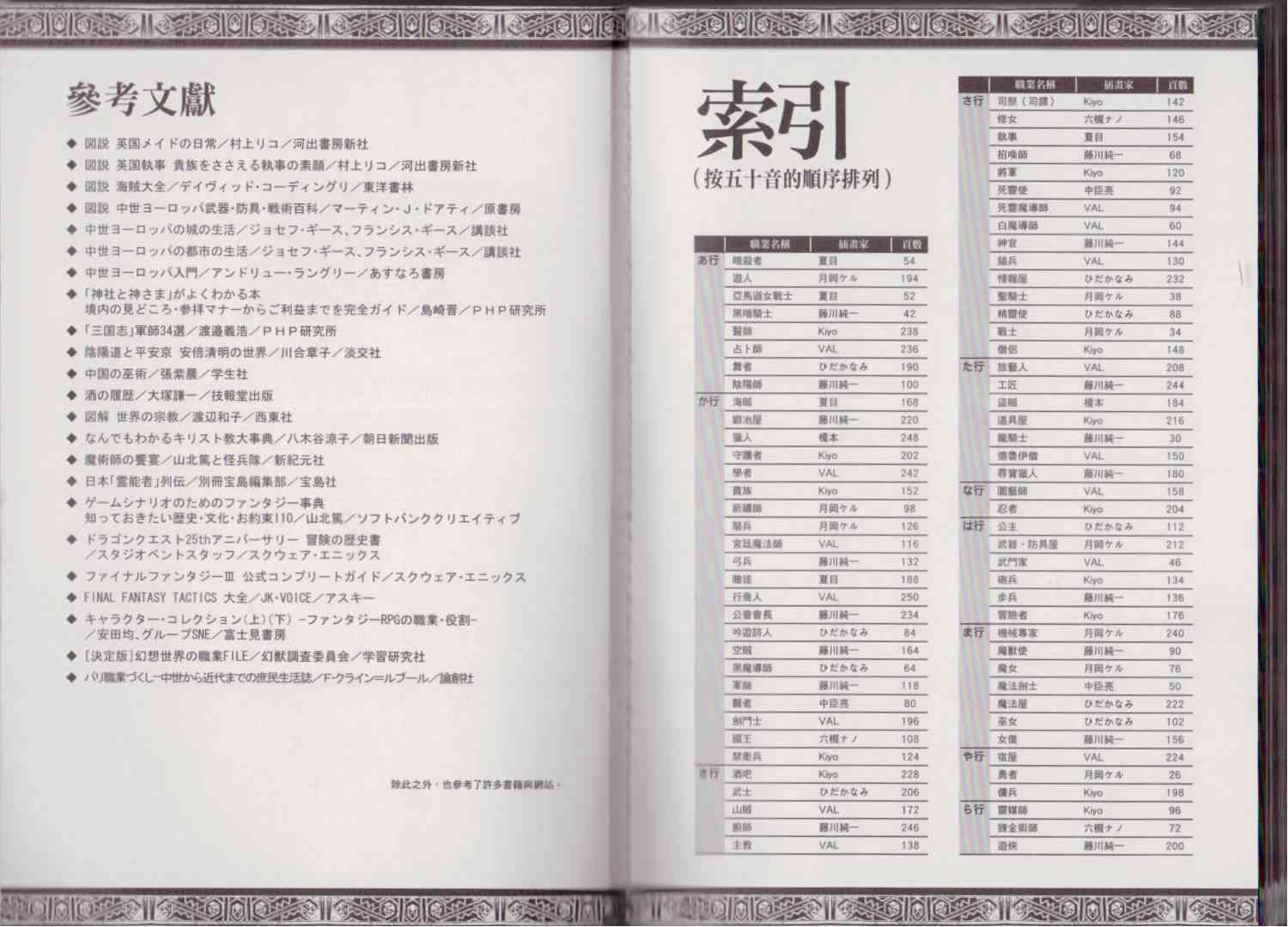 《幻想世界的职业事典》目录
